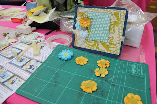 In between the two Prima Classes Wendy, Adrienne, Sue, Sue's daughter Emma and myself did a free make and take project with a lot of techniques taught. More about the make and take in a later post!