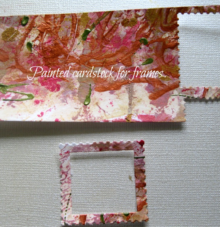 Onto the images, I cut frames from the painted card stock and dry embossed, then cut my images from the St Nicholas Collection to fit.